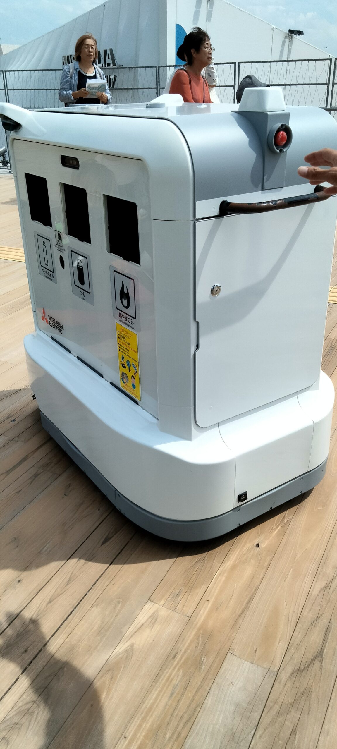 ・理由: リンクでは、自走式の分別ごみ箱が、スタッフがついて走っていた。